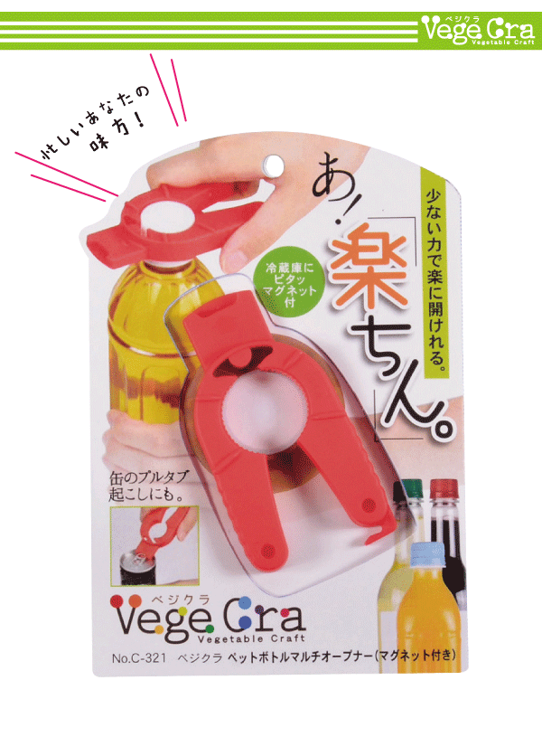 【●日本製】ベジクラ ペットボトル マルチ オープナー (マグネット付) 蓋開け Vege cra ベジタブル クラフト パール金属 べじくら ベジグラ 【RCP】【C-321】