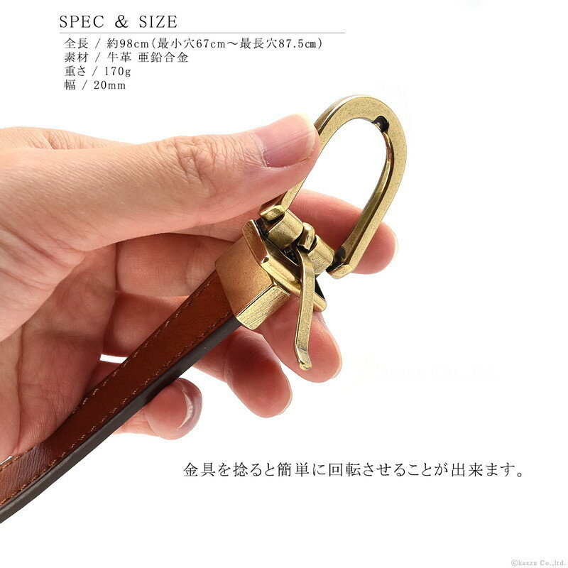 ↓ギフトラッピングのご注文はこちらから↓spec品番1011素材牛革、亜鉛合金サイズ全長 約98cm(最小穴67cm〜最長穴87.5)、幅2cm重量約 170gカラーブラウン、レッド、ブラック、ホワイトメール便〇ラッピング〇商品説明 本牛革を使用したリバーシブルタイプのベルト。